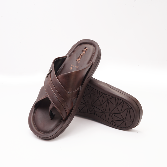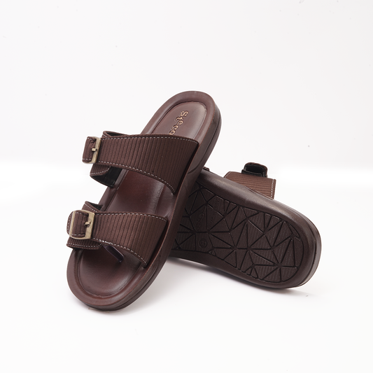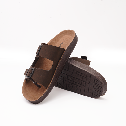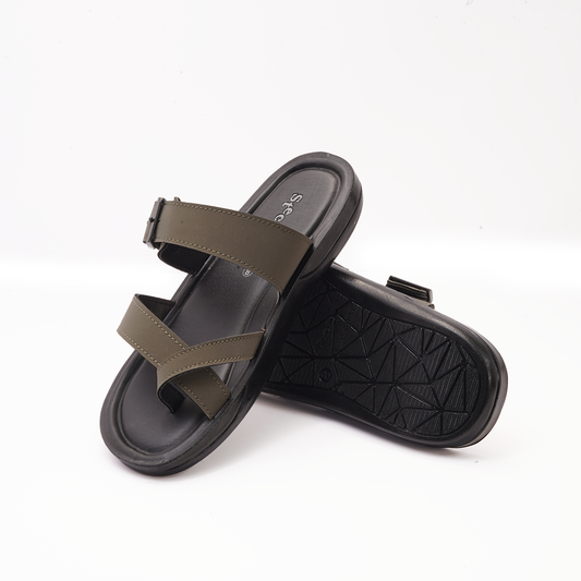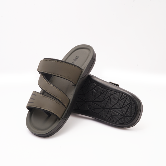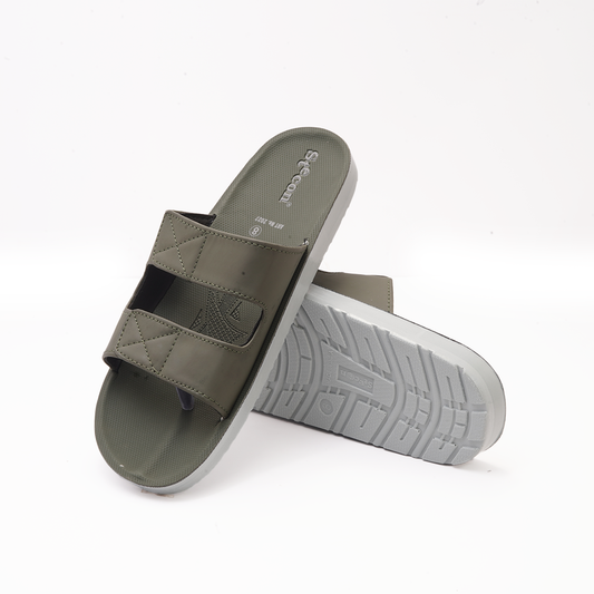 Men's Olive Green Cross-Strap Slides with Double Buckles - 9001