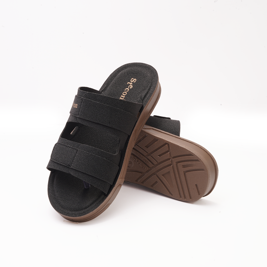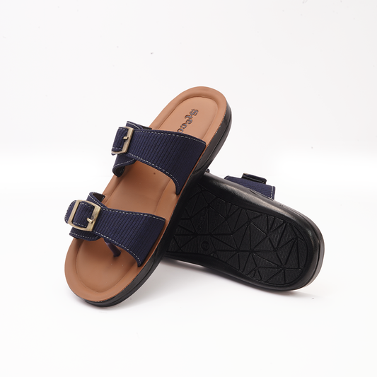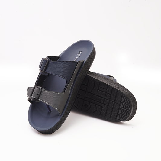 Men's Navy Blue and Grey Double Buckle Slides - 28006