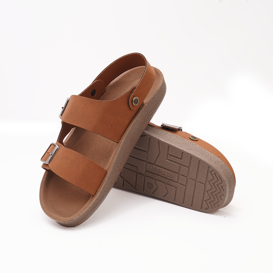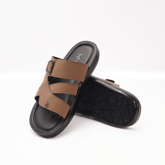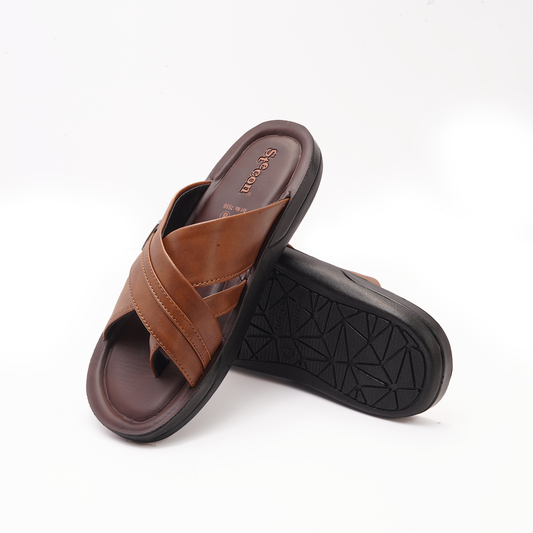 Men's Olive Green Cross-Strap Slides with Double Buckles - 9001