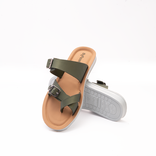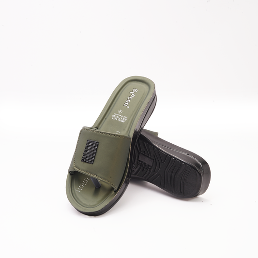 Women's Olive Green Slides - 6754