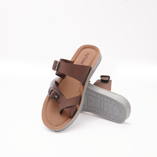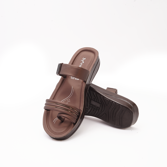 Women's Brown Double Strap Slides - 6755