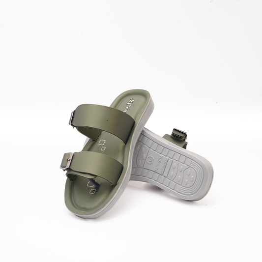 Women's Olive Green Double Buckle Slides - 23013