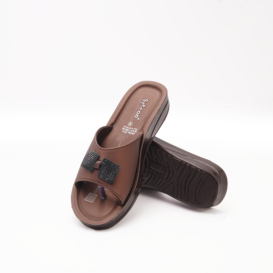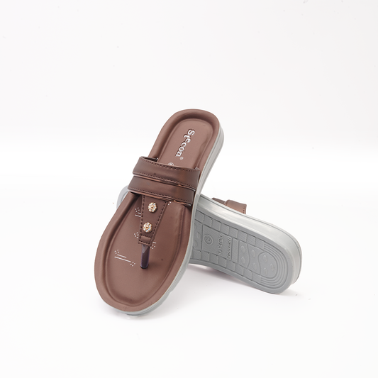 Women's Brown Thong Sandals with Metallic Accents - 23009