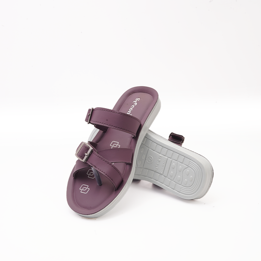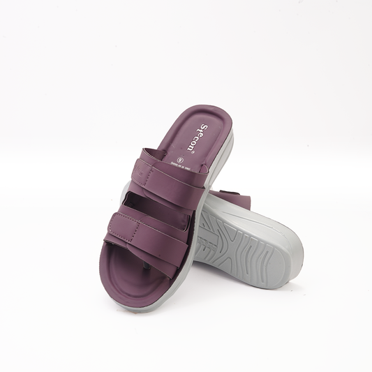 Women's Maroon Double Strap Slides - 6759