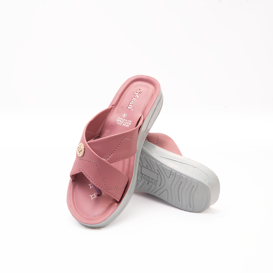 Women's Pink Criss-Cross Slides with Button Detail - 6751