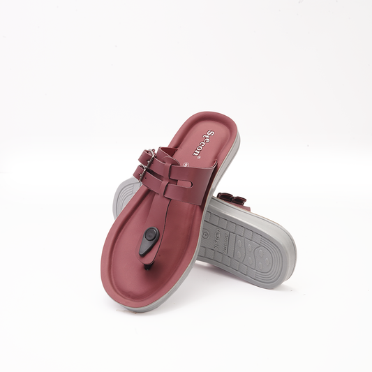 Women's Maroon Thong Sandals with Buckles - 23015