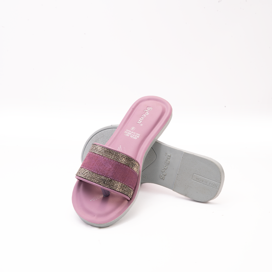 Women's Pink Slides with Rhinestone Detail - 5651